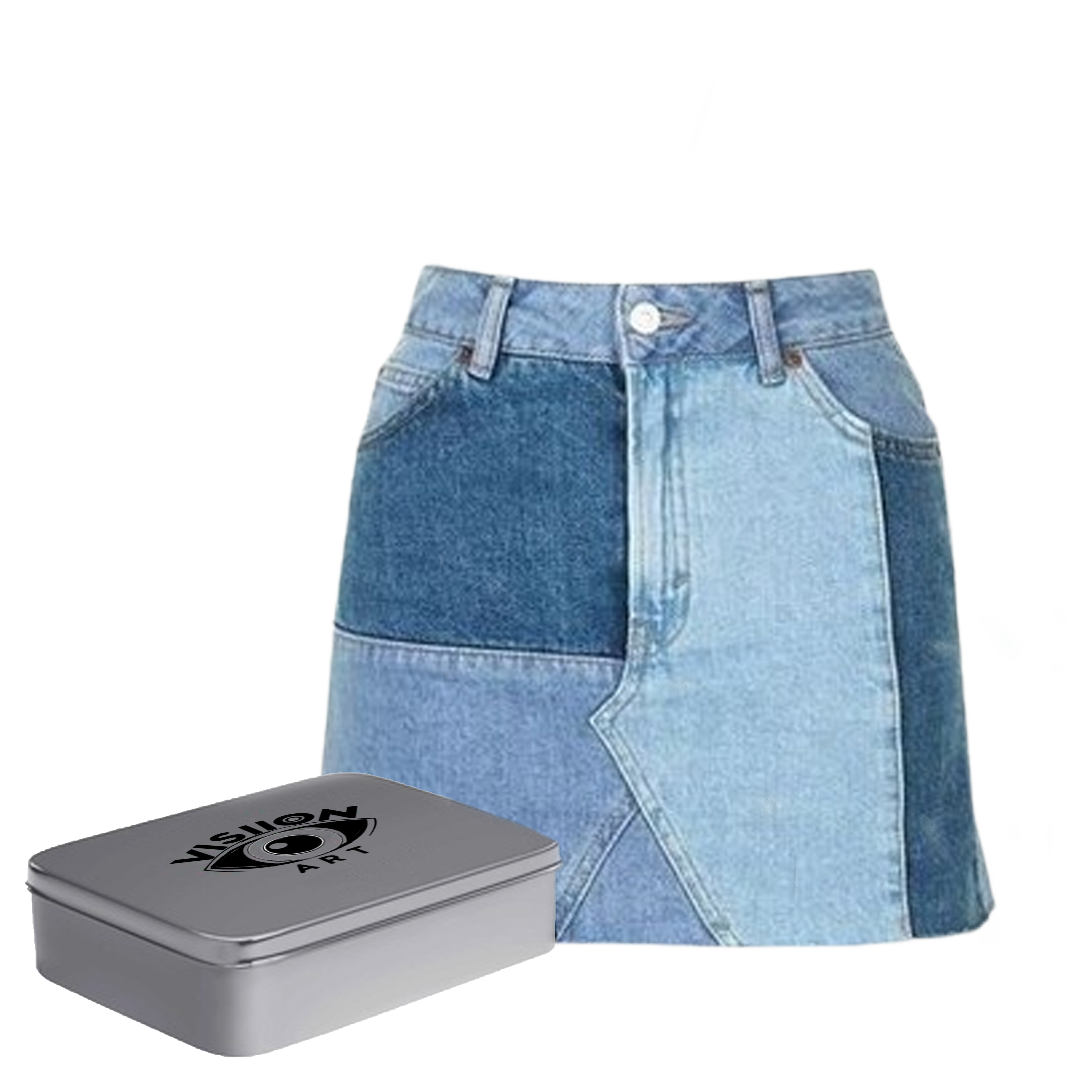 Kit con patrones, telas y explicación paso a paso de cómo hacer tu propia falda tejana en casa.