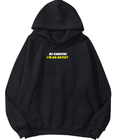 Esta sudadera negra con capucha es una pieza única que combina estilo y creatividad.